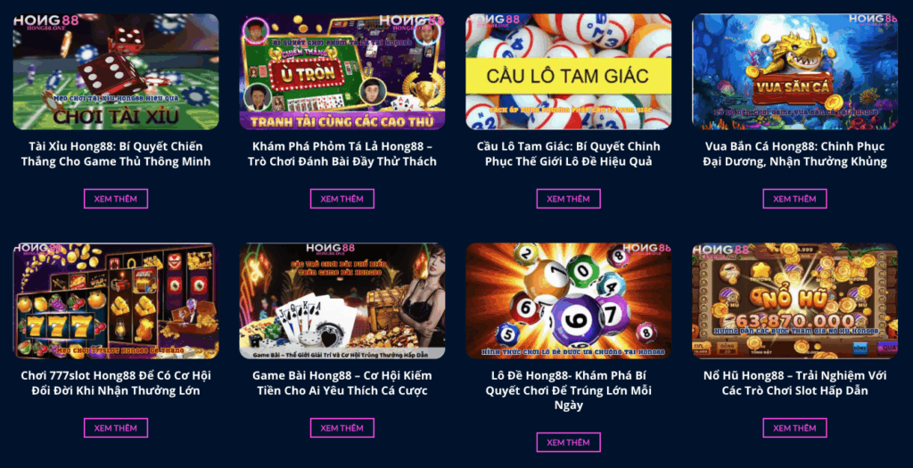 Một trong những điểm mạnh nổi bật của HONG 88 là kho game khủng với đa dạng thể loại cho anh em lựa chọn. Dù là tân thủ hay cược thủ lâu năm thì đều có thể tìm thấy tựa game phù hợp với mình. Nổi bật nhất trong đó có thể kể đến như: